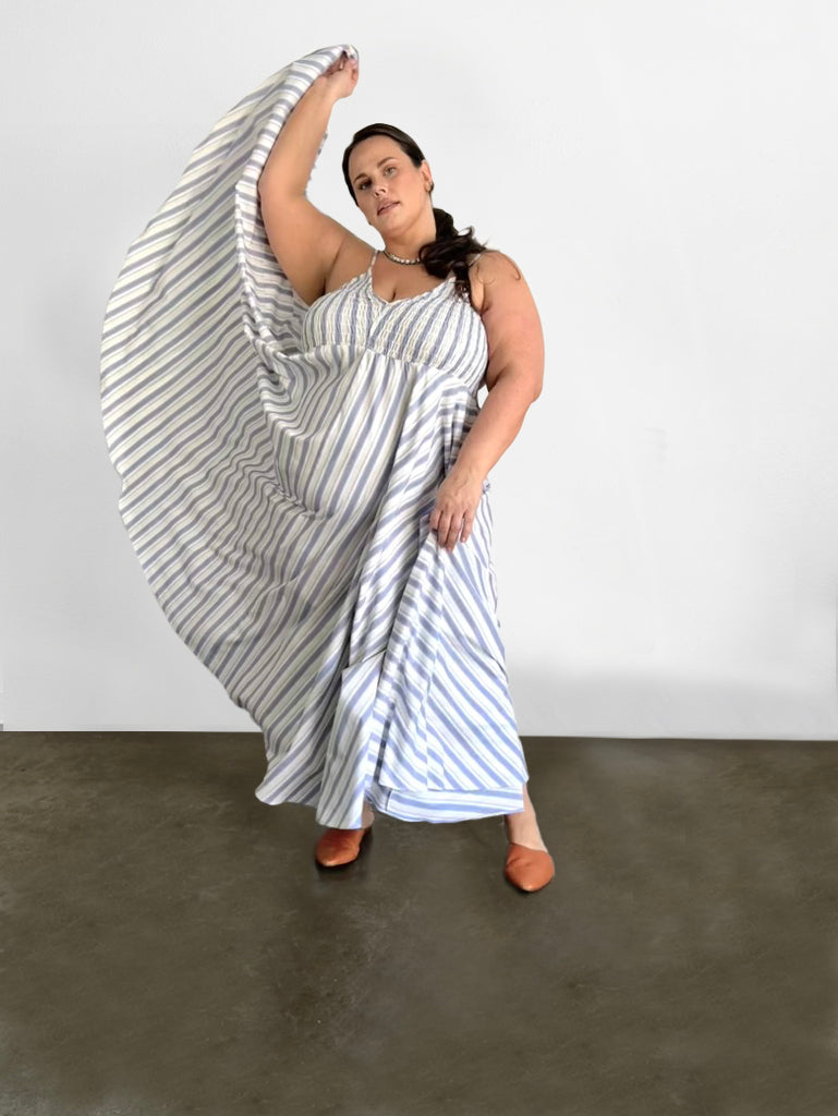 The fully smocked bodice molds and moves with you, offering a flexible, sculpted fit that celebrates curves without restriction. Designed to adapt, flatter, and feel effortless from morning to evening.