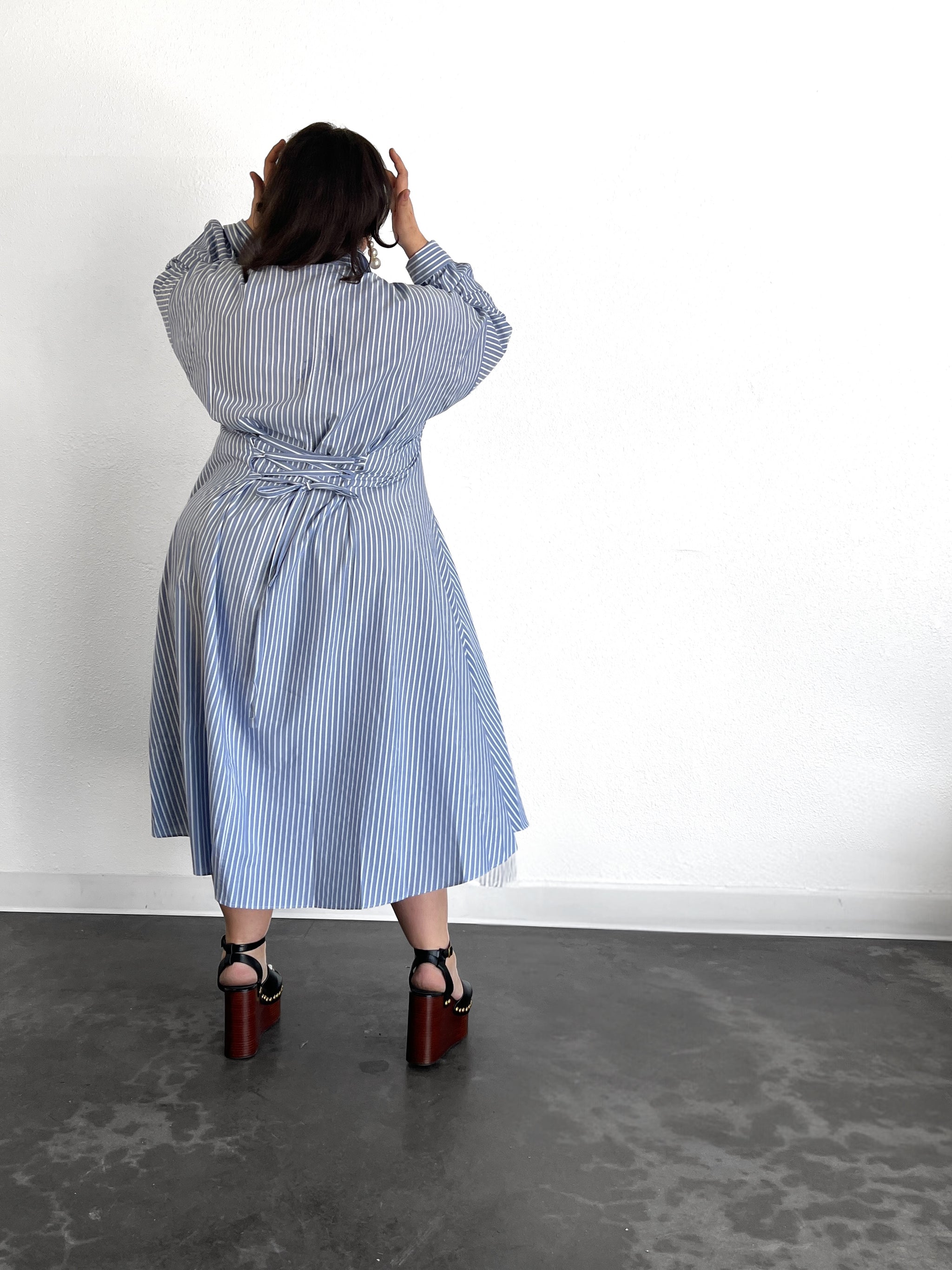 Cinched Waist Shirtdress- Blue/ White Stripe