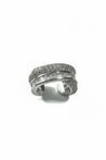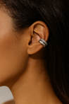 Elevate your look with the Éclat Ear Cuff — a sculptural statement that sparkles with refined brilliance. Designed in polished platinum plated stainless steel, this open band cuff features two rows of crystals: a delicate pavé layer that catches every glint of light, and a striking band of baguette-cut stones for architectural contrast. No piercing required — this cuff slides comfortably onto the ear for effortless sophistication.