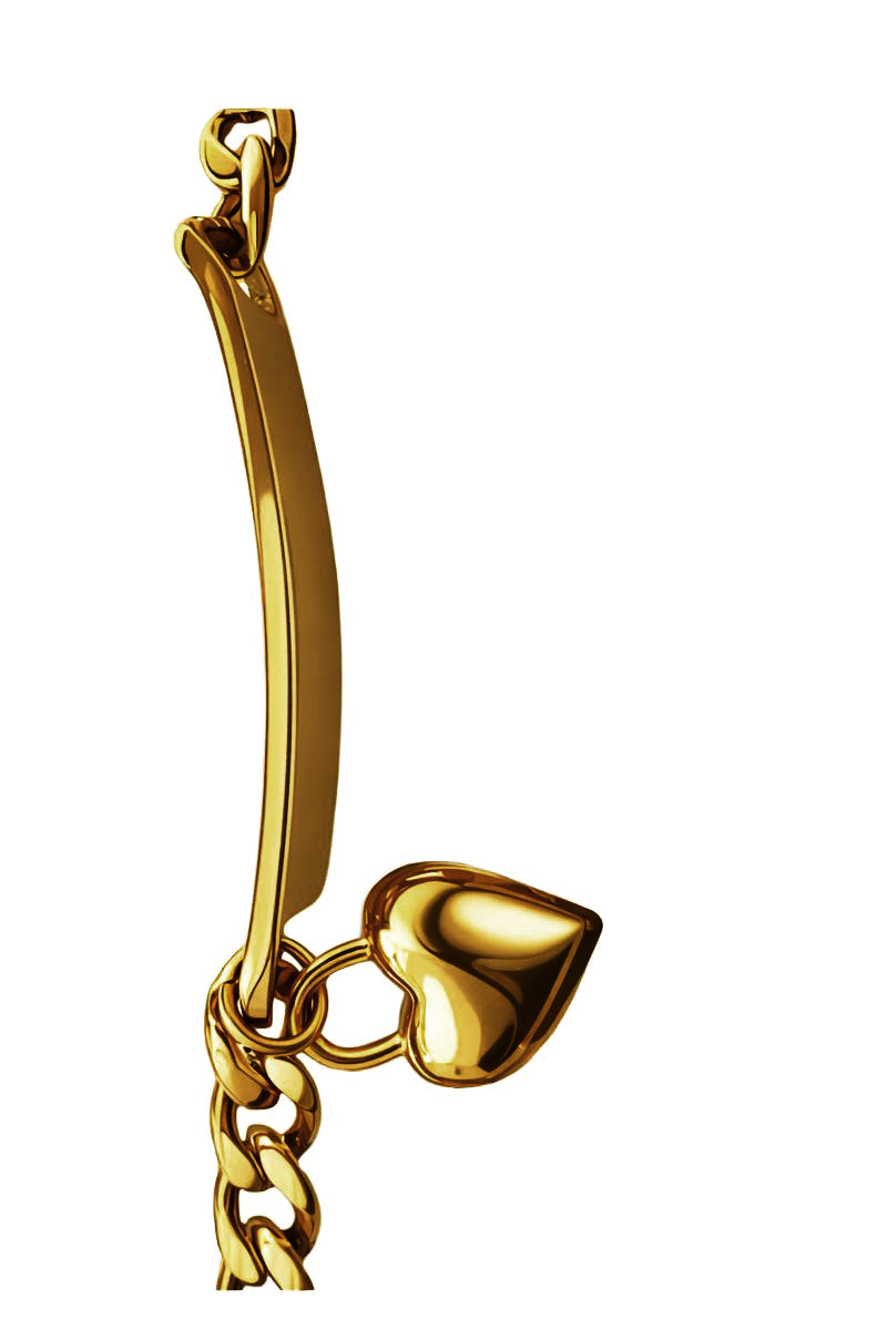 A romantic update to our iconic Che ID Bracelet. A timeless classic with a loving twist. This gold ID bracelet features a polished Cuban link chain, a slightly curved rectangular ID plate, and a rounded heart charm that adds just the right amount of sentiment.