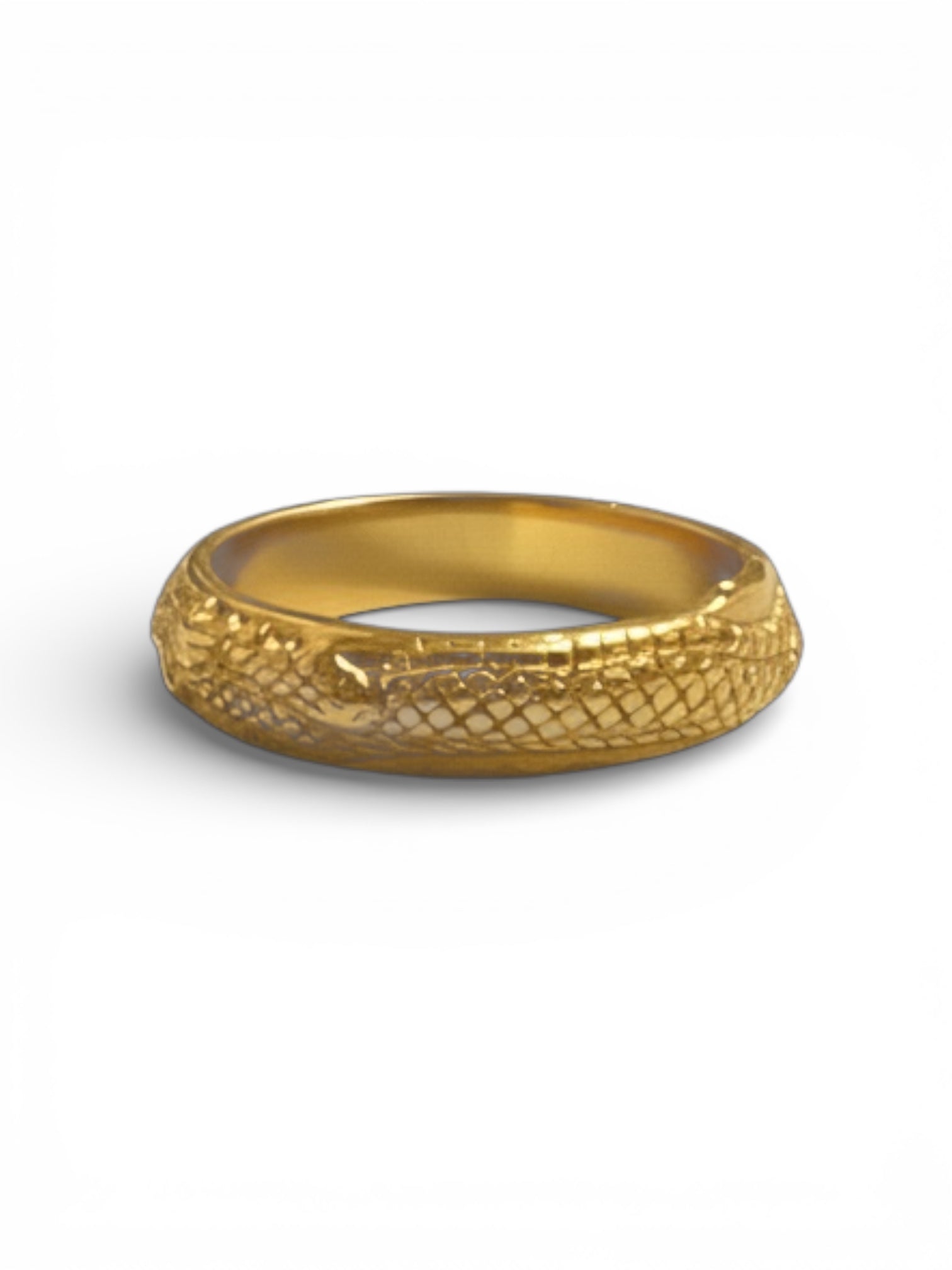 A deep carved motif all around the band. This vintage design with a modern twist, featuring an bas-relief that wraps around your finger.